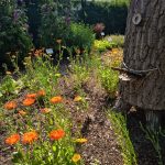 Die vielen verschiedenen Pflanzenarten (67 Arten Heil- und Arzneipflanzen, Stand 2025) in unserem Garten dienen mit Pollen und Nektar der Ernährung und helfen bei der Versorgung ihrer Brut. Färberpflanzen geben uns die Möglichkeit, ein altes fast vergessenes Handwerk neu zu entdecken und kreativ umzusetzen. In und an unserem Teich gibt es viele verschiedene Insekten bis hin zu großen Libellen und natürlich sind auch Frösche zu beobachten.Unser Imker, der die Bienenvölker betreut und diese liebevoll pflegt, kann viel über das Leben und das Arbeiten in einem Honigbienenvolk berichten.