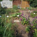 In unserer Gartenanlage auf der Gemeinschafts-Parzelle 2/40 findet man auf 250 m² Honigbienenvölker, viele verschiedene Wildbienenarten, einen Teich mit Fröschen, eine kleine Dachbegrünung und eine große Anzahl von Heil- und Arzneipflanzen, einige Färberpflanzen und noch vieles mehr. Immer mehr fehlt den Wildbienen geeigneter Lebensraum und immer weniger verschiedene Pflanzenarten finden sie in den für sie noch tatsächlich nutzbaren Lebensräumen.In unserem Wild- und Honigbienengarten versuchen wir daher, geeignete Lebensräume mit kleinen Brachflächen, Lehmziegeln, Totholz und Pflanzenstengeln, Angebote für Nistplätze zu schaffen. Mit Lehmhaufen, trockenen Blütenständen und Totholz wollen wir für geeignetes Baumaterial sorgen.